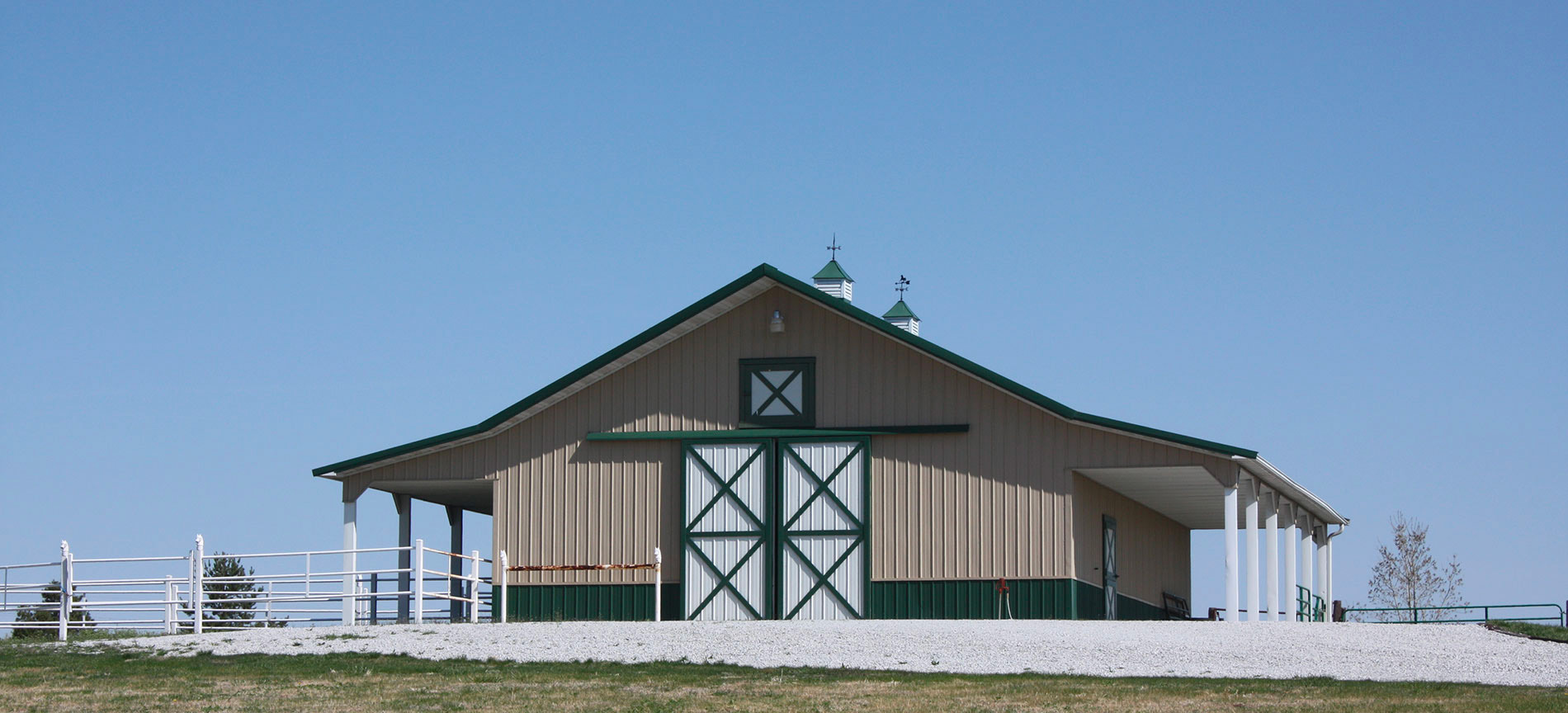 Wick Buildings specializes in open spaces up to 100 feet — ideal for large equestrian riding arenas and training facilities. Wick can also incorporate great features into the design such as lounges, viewing rooms and clubhouses with laundry and kitchens.